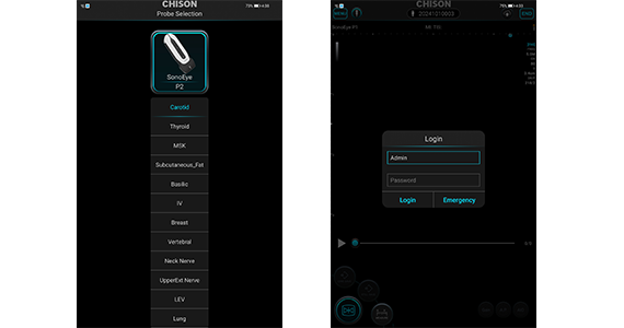 Once you connect SonoEye to your mobile device, the app will launch automatically, leading you to the preset screen.Select the "Emergency" to begin scanning immediately?if there is no need to log in to a specific personal account.